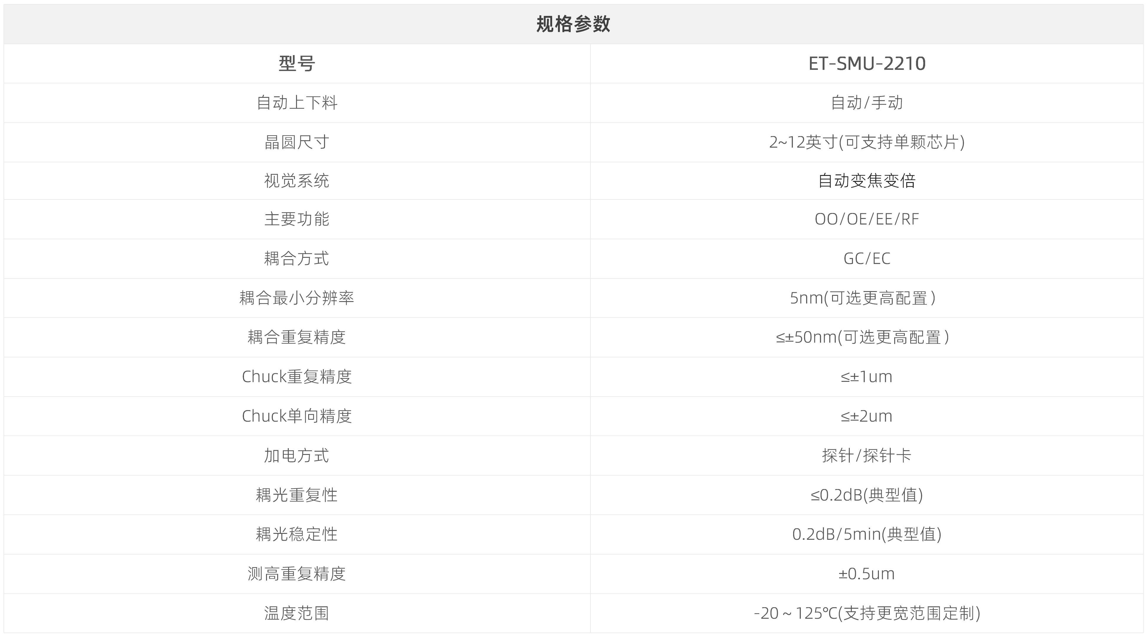 2、自主研发新型视觉辅助结构,配合自研AI算法,系统级别视觉辅助定位误差小于2μm。结合实时耦合功率反馈,确保测试数据准确;同时保证晶圆与高精密透镜安全,有效降低测试成本。