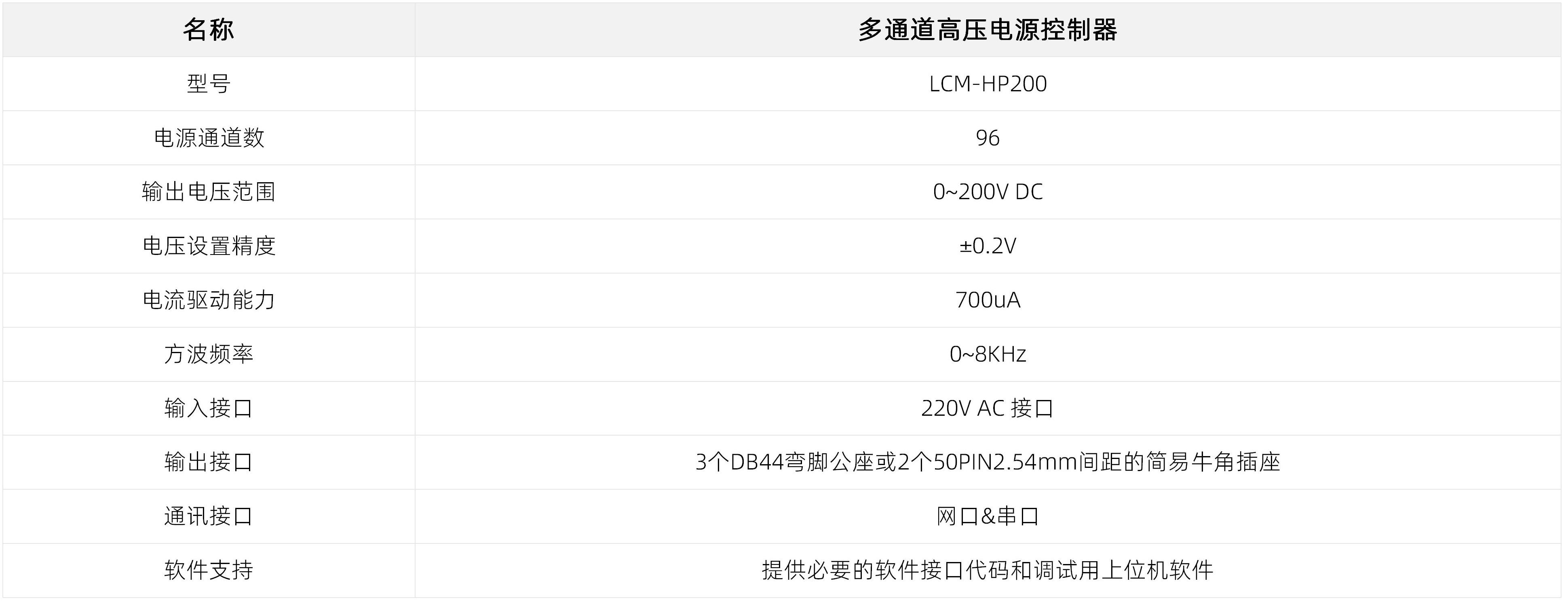 LCM-HP200是一款能够输出96路、0~200V可调直流电源或方波信号的多通道高压直流电源控制器。单通道700uA驱动能力,特别适用于偏转和控制光学MEMS镜。